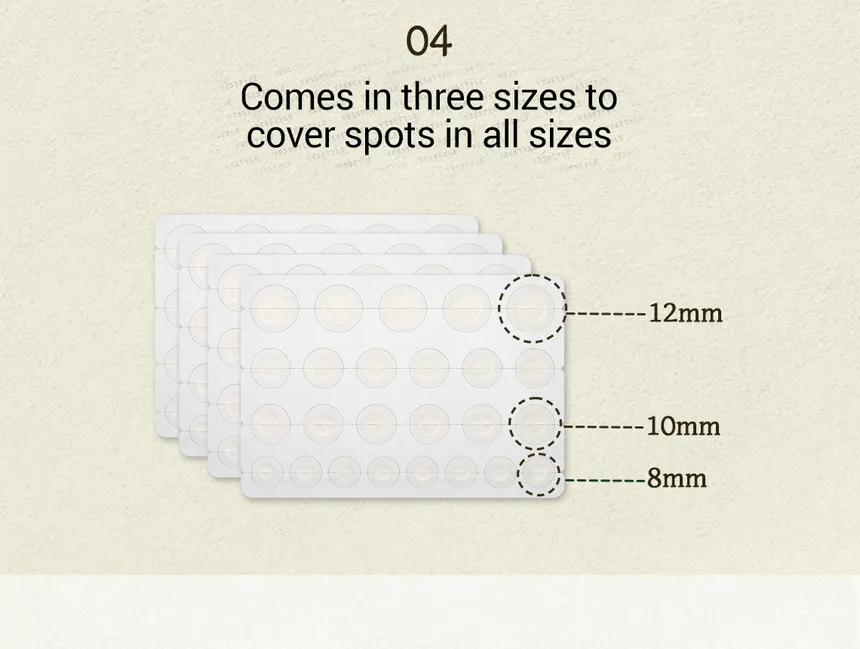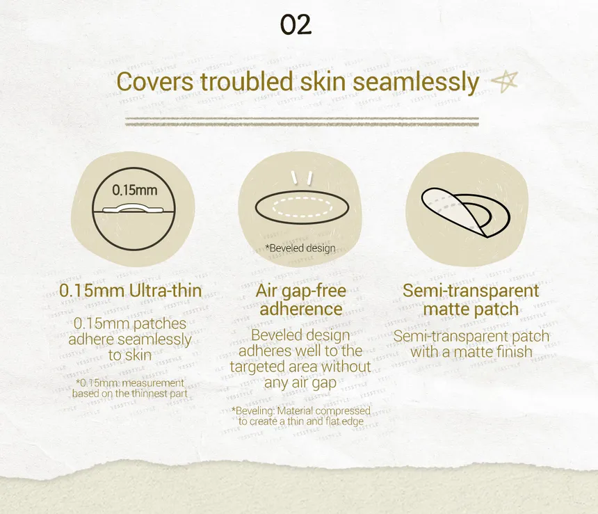 - Parches ultradelgados de 0.15 mm y acabado mate translúcido para una cobertura discreta y natural.